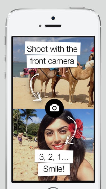 FrontBack consiste fondamentalmente nell’unione di due foto, scattate rispettivamente con la fotocamera posteriore e anteriore del cellulare, così da creare una composizione originale e, in molti casi, divertente. Inoltre, la seconda immagine viene "immortalata" automaticamente dopo pochi secondi, quindi il risultato sarà inaspettato.